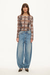 Jersey blouse. Made from soft, lightweight stretch fabric with semi-sheer mesh. Features a crew neckline, long fitted sleeves, and a straight, hip-length hem. Double-layered body with clean cuffs and edges. Slim fit.