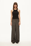 Checked woven trousers. Made from smooth suiting fabric. Features full-length straight-leg silhouette, tailored waistband with belt loops and adjustable side tabs, back double-welt pockets, and subtle waist darts. Relaxed fit.