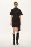 Midi dress. Made from a smooth suiting fabric. Featuring a classic round neckline, asymmetric draped detail at the skirt secured with a metal-tone buckle, wide shoulders with mid-length sleeves, and a concealed back zip. Regular fit.