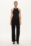 Suede straight-leg trousers. Made in soft, smooth suede with tonal stitching. Featuring a concealed zip fastening and press stud at the waist. Two front pockets and two patch pockets at the back. Silver button and rivets. Regular waist and straight leg.