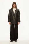 Long leather blazer. Made in soft and smooth leather with tonal stitching. Featuring a notch lapel and single-button fastening. Single chest pocket and two flap pockets at the front. Padded shoulders and long sleeves with buttoned cuffs. Single slit at back. Fully lined. Regular fit with straight, streamlined silhouette.